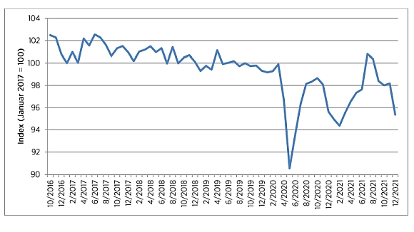 HDE-Konsumbarometer im Dezember: Bereitschaft Geld auszugeben geht stark zurück. Das aktuelle HDE-Konsumbarometer zeigt für die kommenden drei Monate eine deutliche Verschlechterung der Verbraucherstimmung an. Nachdem der Index noch im Vormonat etwas gestiegen war, sackt er nun ab. Bei weiterhin angespannter Pandemielage könnte die negative Entwicklung der Verbraucherstimmung den privaten Konsum im Weihnachtsgeschäft ausbremsen.